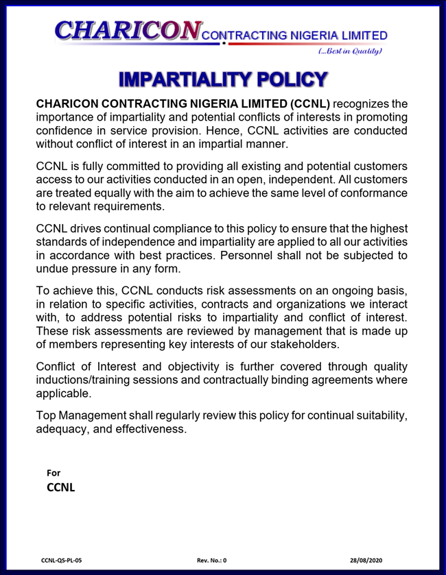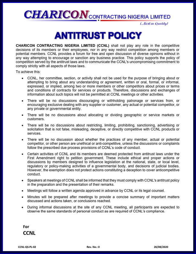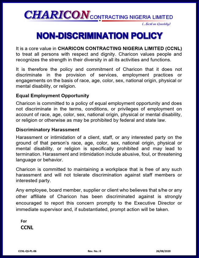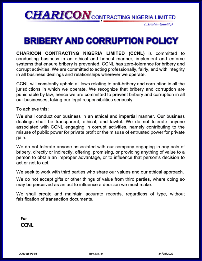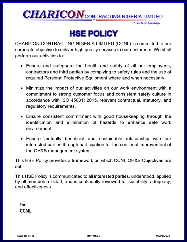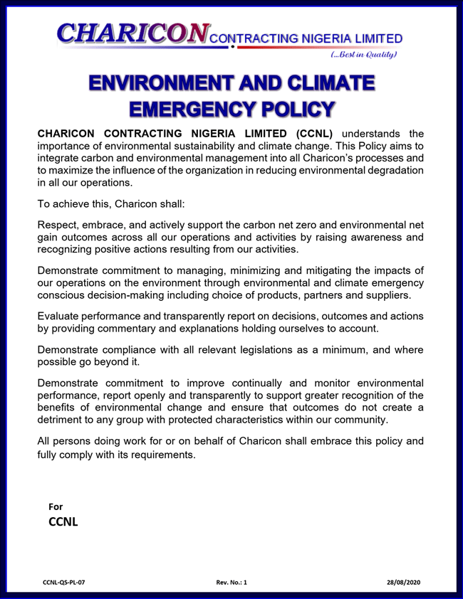 Charicon Contracting Nigeria Limited is a fully Nigerian owned company, registered and incorporated under the company and allied matters act of Nigeria. Head Office at KM 2, Igbo-Etche Road, Rumuokwurusi, Port Harcourt, Rivers State, Nigeria.