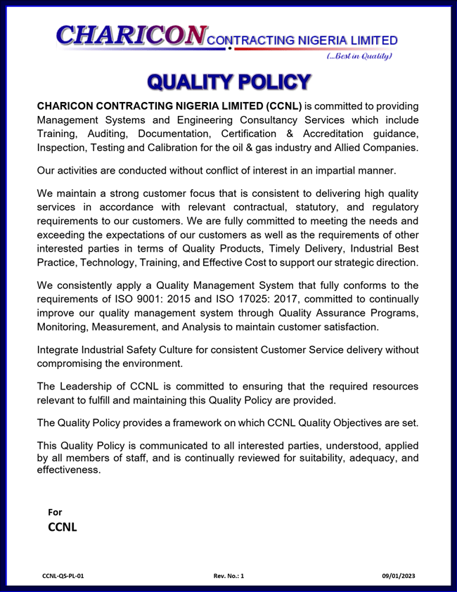To deliver quality engineering and management systems solutions that exceed the expectations of customers through industrial best practices compliant with international standards.